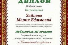 занявшую первое место во Всероссийском творческом конкурсе " В Мире много сказок"