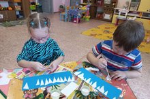 Дети средней группы в рамках тематической недели делали аппликацию "Сосульки на крыше".
