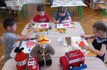 В тематической день "День пожарной охраны " дети старшей группы беседовали о пожарной безопасности и рисовали пожарные машины и пожарных. -