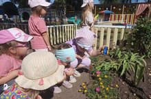 Дети средней группы наблюдали за пчелами на клумбе, выполнили аппликацию