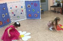 Воспитанники подготовительной группы поиграли в хороводную игру "Карусели". После игры дети выполнили аппликацию". Праздничный хоровод" В ходе выполнения работы дети закрепили умение вырезывать симметричные предметы из бумаги, сложенной вдвое, а также составлять из деталей аппликацию.
