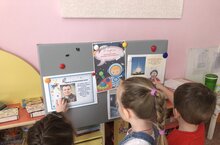 Этот день в нашей группе был посвящен Дню космонавтики. Для расширения кругозора в группе были использованы иллюстрации о планетах, космонавтах спутниках, созвездиях. В беседах с воспитателем дети узнали о человеке, покорившем космическое пространство – Юрии Гагарине о том, как четвероногие друзья человека проложили путь к звездам, о планетах больших и маленьких, об их свойствах. В беседах и ООД пополнился словарный запас. А словесные и дидактические игры, способствовали закреплению этих слов, и использовании их в речи воспитанников. Загадки на космическую тему – закрепили интерес детей к теме о космосе. -
