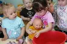 С детьми второй группы раннего возраста в рамках тематическое недели "Неделя добрых дел", воспитатель Хусаинова В.И. провела занятие "Помоги кукле Маше умыться". В ходе игры закрепили с детьми культурно-гигиенические навыки, а также разучили потешку "Водичка, водичка, умой мое личико..."