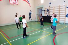 В рамках Всемирного дня памяти жертв СПИД учитель физической культуры провела соревнования по волейболу.