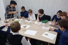 Для учащихся нашей школы руководитель клуба ИЗО «Радуга» при Ялкынском СДК Илюшин Валерий Валентинович рассказал о технике двойного мазка. Принцип этой техники прост: одна половина художественной кисти окунается в один цвет, а вторая половина этой же кисти окунается в другой цвет и, проводя всей плоскостью кисти одновременно по поверхности бумаги, мы получаем двухцветный мазок с очень нежными, плавными оттенками, набранных на кисть красок. Ребятам очень понравилась работать в технике двойного мазка.