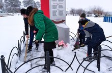 Очистка от снега обелиска в д. Ялкын 09.02.2022