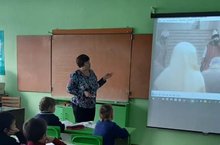 29 октября в школе учитель начальных классов Бочкарева Л.Н. провела с учащимися 1-4 классов беседу по теме «Из истории праздника - День народного единства». Она рассказала о символике российского государства. Провела работу с пословицами и поговорками, небольшую викторину. Показала исторический фильм о вторжении поляков на территорию Руси, создании Мининым и Пожарским народного ополчения. Осенью 1610 года польские паны в обманом захватили Кремль и пытались прорваться на север Руси. Повсюду вспыхивали восстания, но хорошо вооруженные интервенты разбивали разрозненные крестьянские отряды. Освободительное движение возглавили нижегородский купец Кузьма и князь Дмитрий Пожарский.
