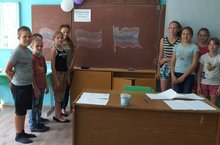 6 июня в пришкольном лагере труда и отдыха, после вкусного обеда, было проведено внеклассное мероприятие «С любовью к Родине». Воспитанники лагеря читали стихи, отвечали на вопросы викторины, отгадывал загадки, провели конкурс пословиц, поиграли в игру «Календарь». Ответили на вопрос «Что такое Родина?», вспомнили символы государства.