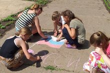 В преддверии Дня России в школе также был организован конкурс детских рисунков на асфальте «Россия, Родина моя». Мероприятие прошло на территории школы, в котором приняли участие воспитанники пришкольного лагеря труда и отдыха. В своих рисунках дети выразили свое отношение к любимой стране и к празднику Дню России. Разделившись на две команды, работа закипела. Ребята изобразили родную природу, российский флаг - он был почти на каждом рисунке.