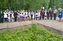С окончанием школы первоклассники и школьные товарищи поздравили 9 класс.