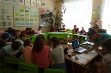 В пришкольном лагере труда и отдыха созданы все условия и разнообразная программа, и хорошее питание. Сегодня день прошёл под девизом «Здравствуй, лето красное!». Также и само мероприятие имело такое название. Ребята разделились на 2 команды: «Чистая аллея», «Защитники планеты», после чего были проведены конкурсы «Вопросы на засыпку», совершили путешествие по станциям: «Лесные загадки», «Орнитологическая», «Эрудит» и т.д. Капитаны соревновались в экологических знаниях. Смотрели видеосюжет о природе, видеоролик, посвящённый Году экологии. Праздник прошёл весело. С небольшим отрывом победила команда «Защитники планеты».