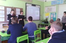 31.03.2017г. внеклассное мероприятие «Хартия Земли». Члены кружкового объединения «Фенолог» под руководством Денежкиной О.В. провели с учащимися 7-9 классов внеклассное мероприятие, где познакомили присутствующих с историей, созданием, содержанием, преамбулой «Хартии Земли». Были озвучены столпы и принципы «Хартии Земли» и показана презентация о их необходимости.