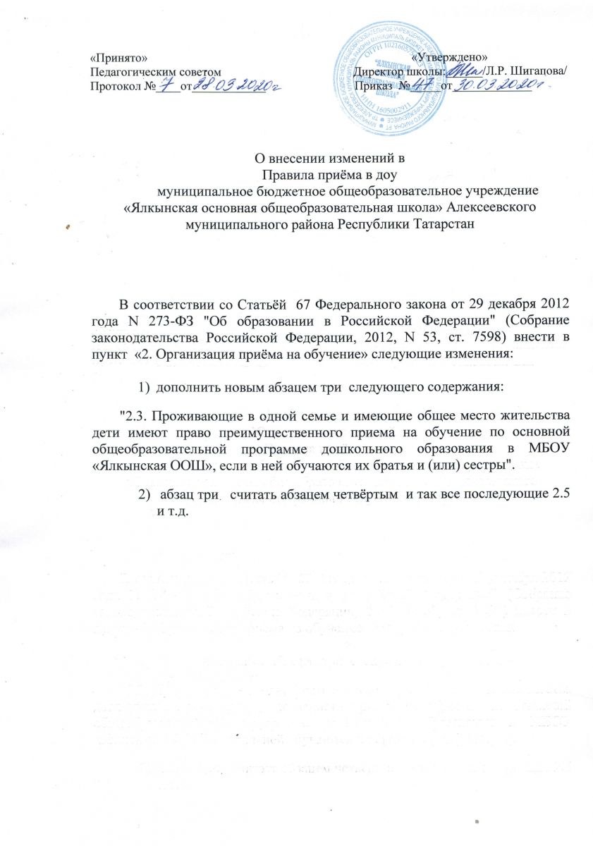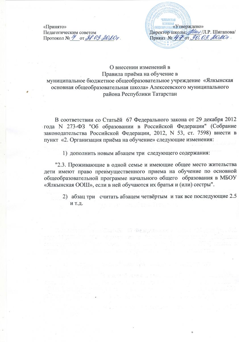 О внесении изменений в Правила приёма в образовательное учреждение.jpg