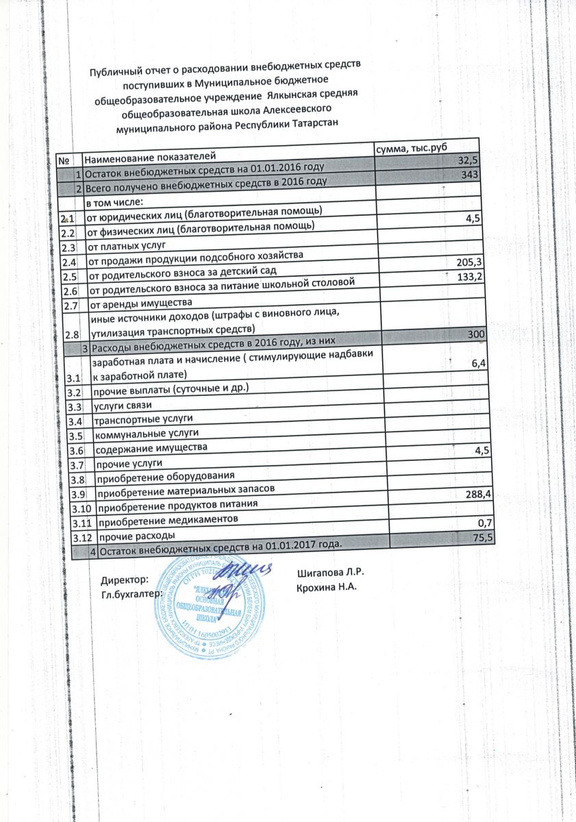 Публичный отчет о расходовании внебюджетных средств за 2016 год