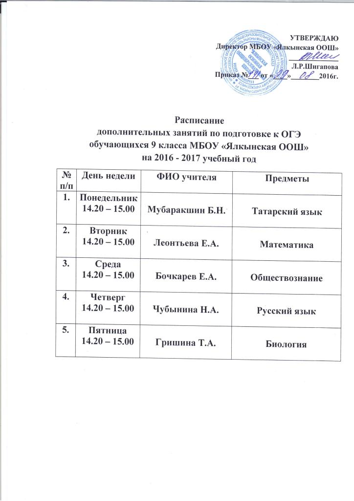 расписание дополнительных занятий по подготовке к ОГЭ