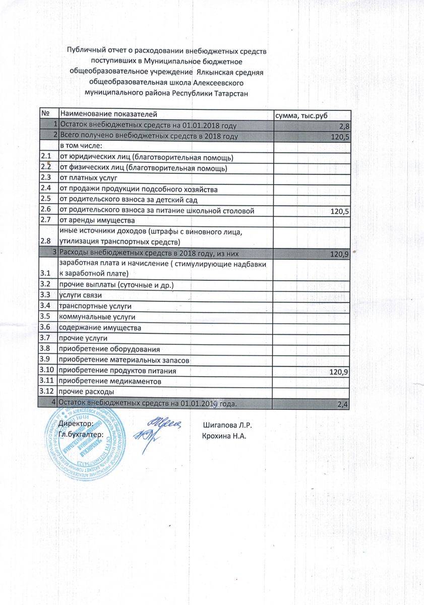 Публичный отчет о расходовании внебюджетных средств за 2018 год