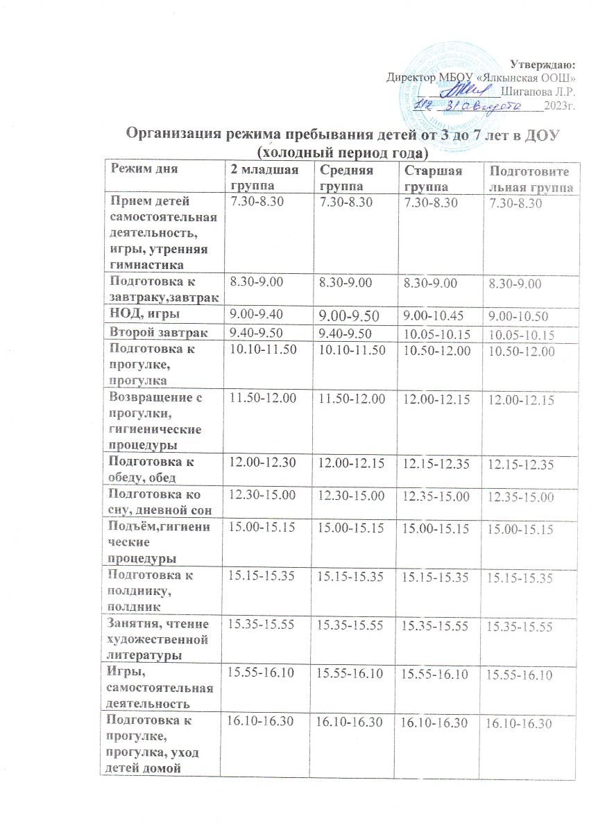 Организация режима пребывания дошкольной группы на 2023-2024 учебный год