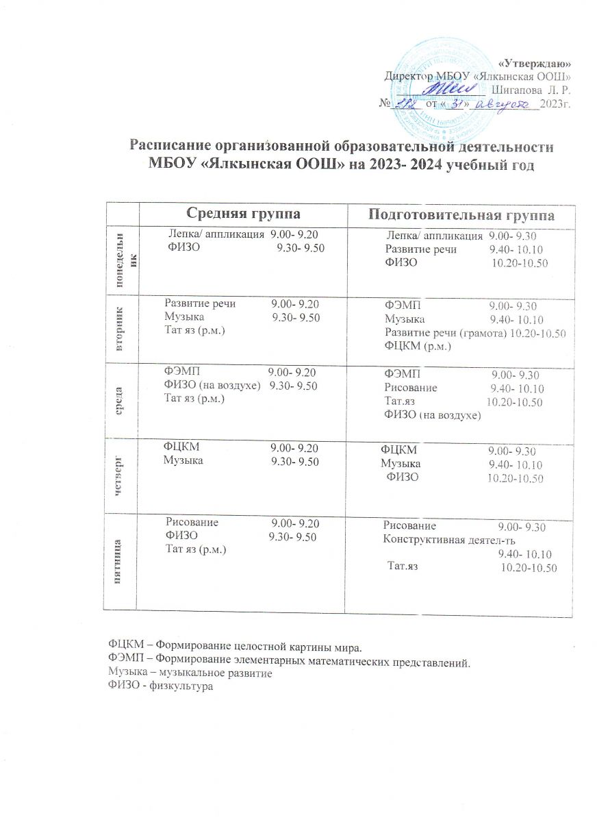 Расписание организованной образовательной деятельности на 2023- 2024 учебный год