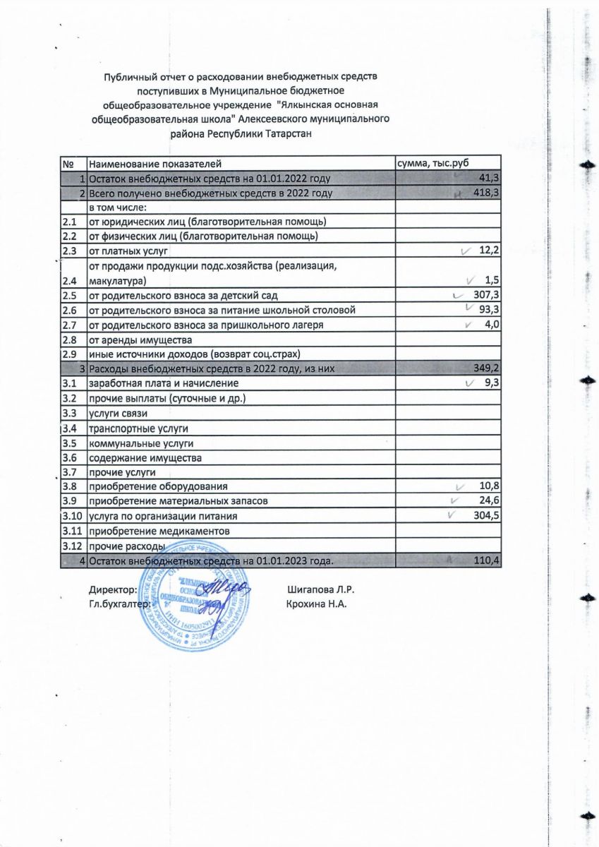 Публичный отчёт о расходовании внебюджетных средств за 2022 год
