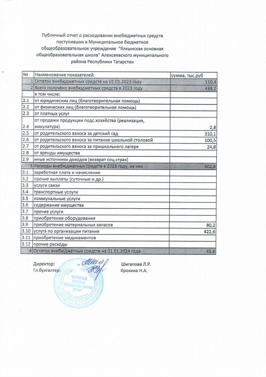 Публичный отчёт о расходовании внебюджетных средств за 2023 год