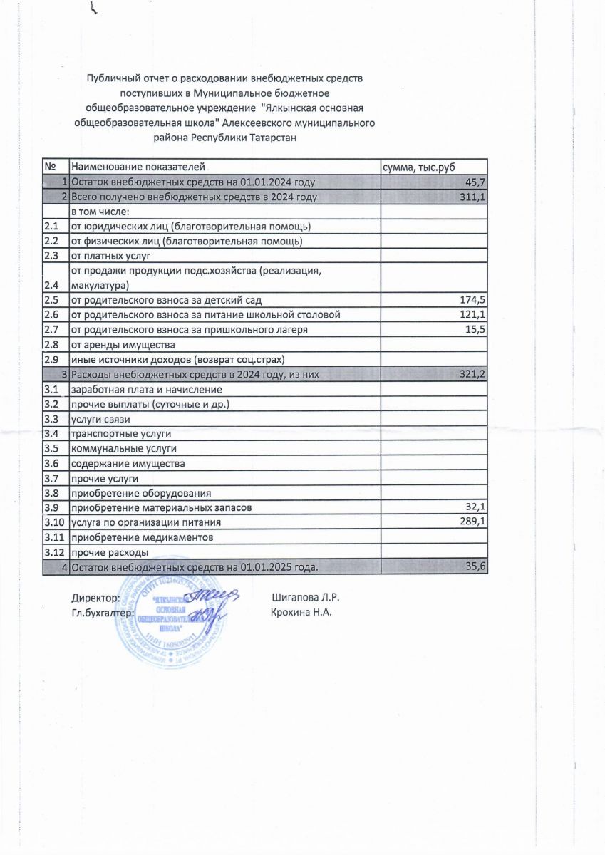 Публичный отчёт о расходовании внебюджетных средств за 2024 год