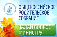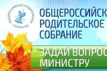 Задать свой вопрос Министру можно уже сейчас. На сайте Минобрнауки России для этого открыт специальный раздел «Общероссийское родительское собрание» – http://минобрнауки.рф/спецпроекты/родительское-собрание. Так же можно воспользоваться поисковой системой Яндекс набрав «Общероссийское родительское собрание минобрнауки». Вопросы, заданные через сайт также найдут свое отражение в ответах Министра.