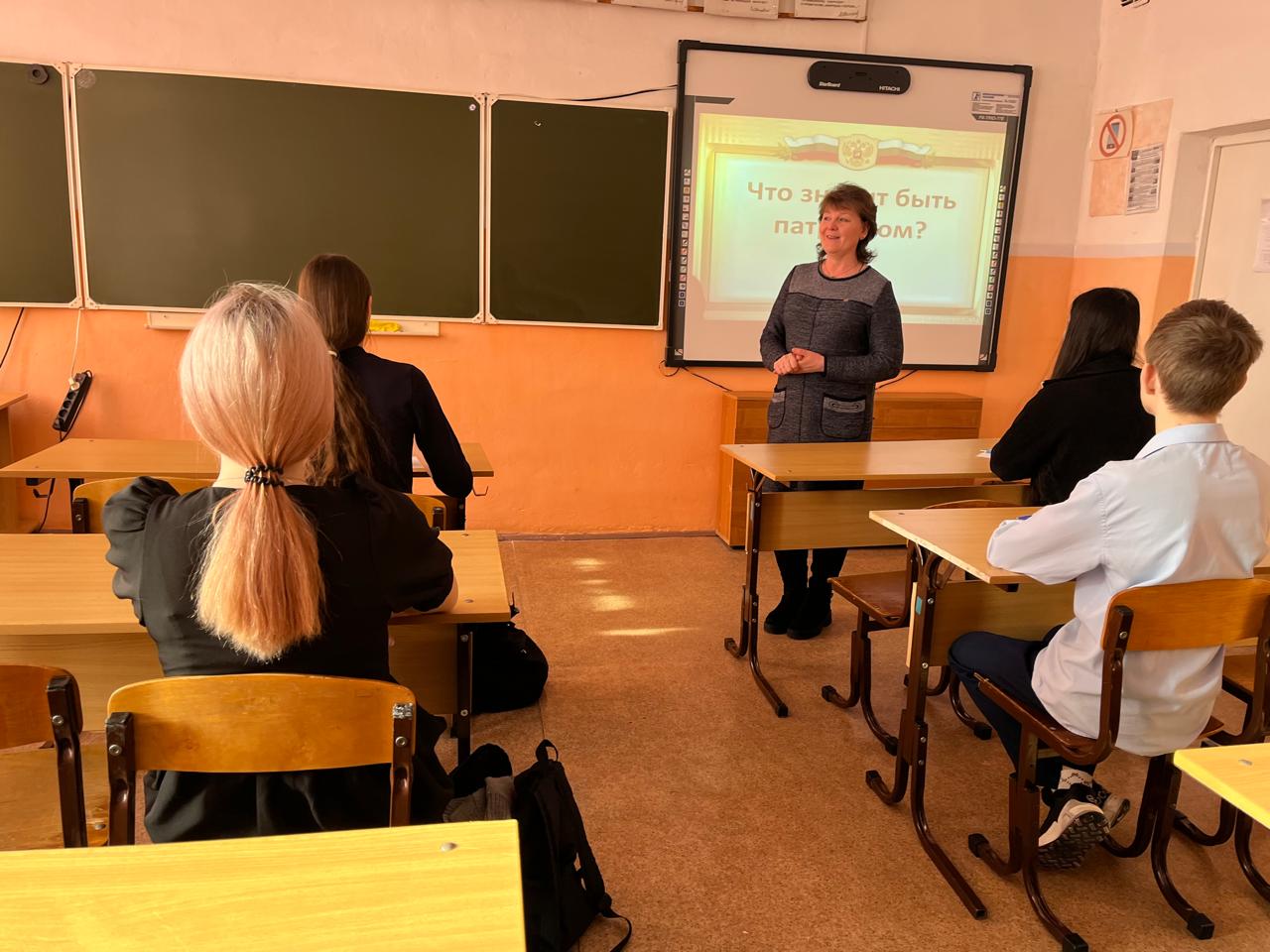 19 февраля в 9 классе в рамках парламентского урока было проведено занятие "Что значит быть патриотом", на котором присутствовала депутат Большеполянского сельского поселения Люлина Марина Анатольевна. В ходе занятия обучающиеся 9 класса приняли активное участие в обсуждении вопросов диспута, выражали свою точку зрения.