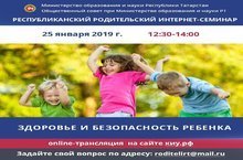 Во исполнение плана работы Министерства образования и науки Республики Татарстан 25.01.2019 с 12.30 до 14.00 состоится Республиканский родительский интернет-семинар ».