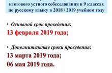 По аналогии схемы проведении итогового сочинения в 11 классах, будет предусмотрено три даты проведения устного собеседования в 9 классах (в этом учебном году это 13 февраля, 13 марта и 6 мая), что дает две попытки школьникам пересдать при получении незачета, либо возможность пройти устное собеседование в один из дополнительных дней при неявке по уважительной причине. ►Подробнее