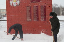 Члены ДОО «Луч» приняли активное участие в очистке памятника павшим героям от снега.