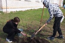 Акция "ЭКО - весна". Ученики 8 класса посадили саженцы на территории пришкольного участка.