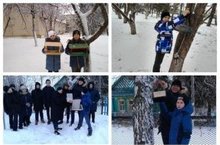 Мәктәп тирәсендәге агачларга кошлар өчен җимлекләр элдек.
