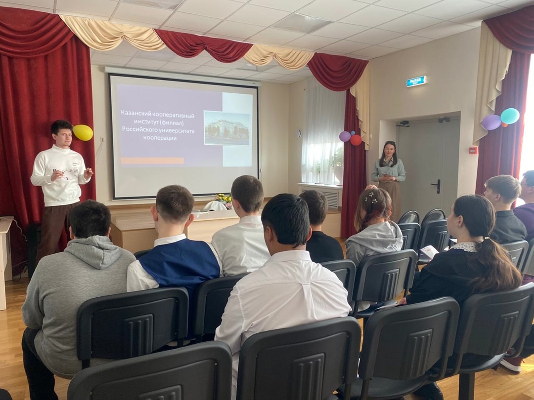 Сегодня прошла встреча учащихся с представителями Казанского кооперативного института. Они ознакомили выпускников с институтом и кооперативным колледжем.
