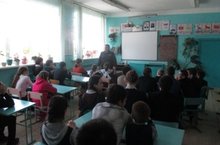 Бүген мәктәптә район ЮХИДИ бүлеге инспекторы Хөсәенов Р.Җ. укучылар белән очрашты. Бу чараның максаты: укучыларны юл фаҗигаләреннән саклау, язгы каникуллар чорында аларның иминлеген ныгыту һәм юлда хәвеф- хәтәрсез йөрү кагыйдәләрен төшендерү.