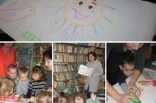 Бүген бакча балалары мәктәп китапханәсенә кунакка килделәр. Анда аларны һәрвакыттагыча китапханәче Гөлфия апалары каршы алды. Балаларны ул төрле кызыклы китаплар белән таныштырды, әкият сөйләде. Балаларга "Без,без,без идек..." уены бигрәк тә ошады.Соңыннан алар кояшка нурлар ясап,елмаю бүләк иттеләр. Очрашу күңелле үтте.
