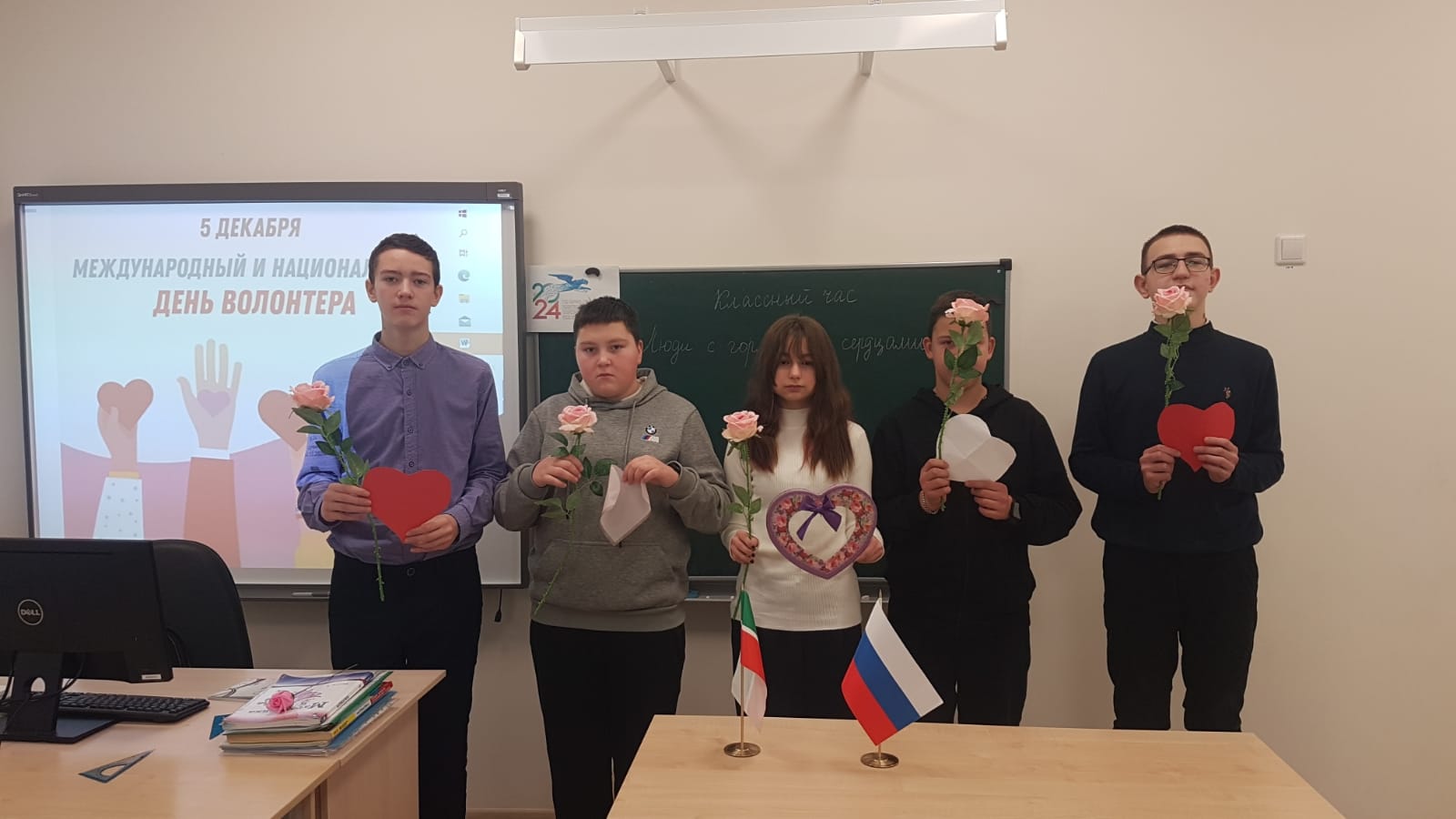 Сегодня в честь празднования Дня Добровольца (волонтера) для старшекласников прошел классный час. Классный руководитель Галимова А.Р. рассказала о истории возникновении волонтерского движения, кто такой волонтер, какими качествами должен обладать, и в какой сфере он может заниматься.