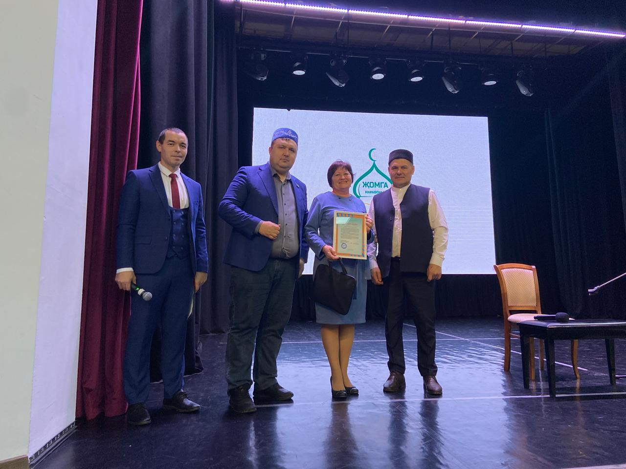 Сегодня педагоги и учащиеся нашей школы приняли участие в «Пятничном марафоне», организованном общественно-полезным благотворительным фондом «Терэк-Опора». Центр развития татарского языка в лице директора Сайфутдиновой А. Н. награждена Благодарственным письмом за развитие и сохранение родного языка и народных традиций.