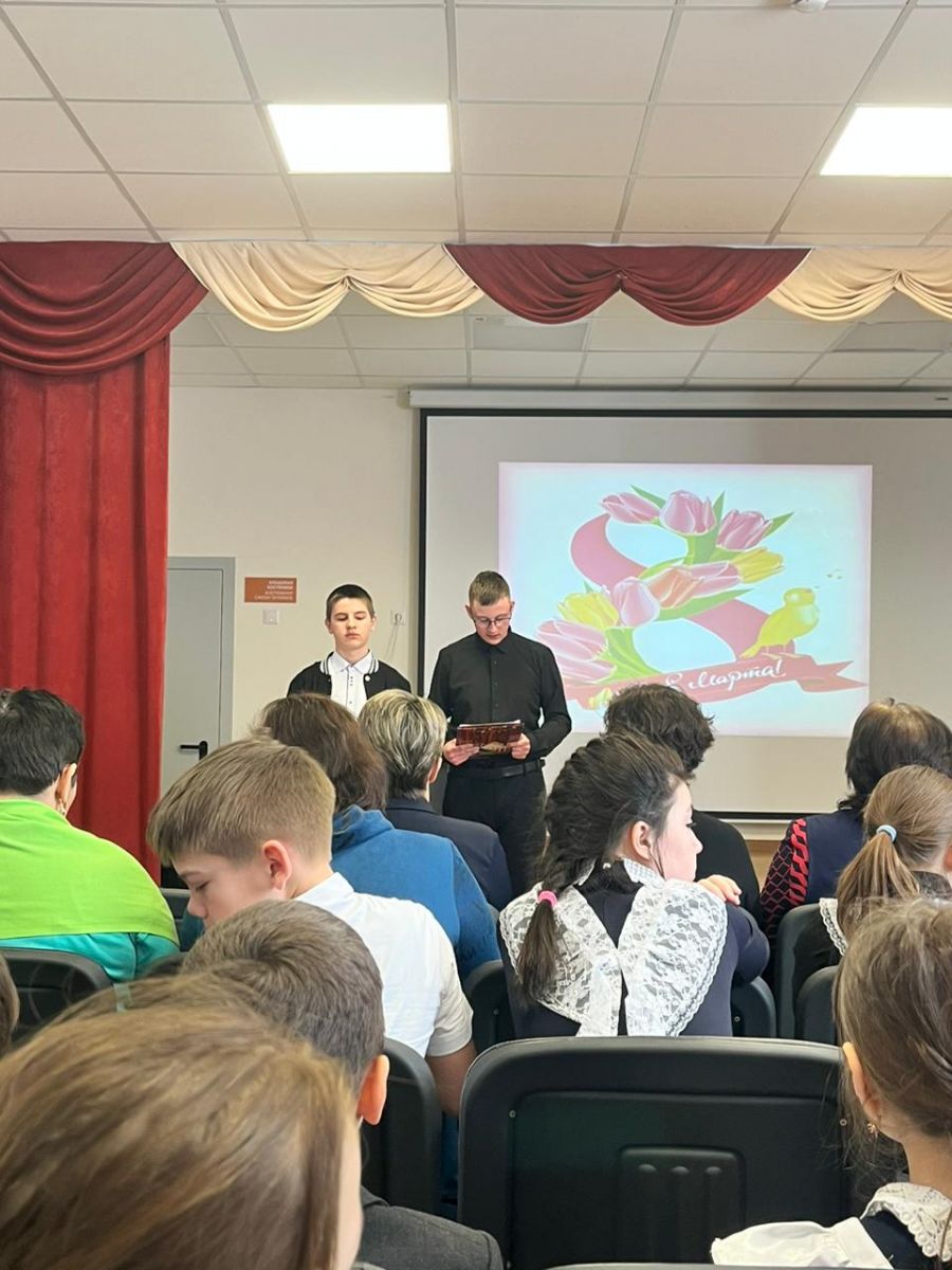 7 март көнне, безнең мәктәптә 8 Март Халыкара хатын-кызлар көненә багышланган бәйрәм концерты узды. Концерт программасы һәр кешенең күңелендә кояшлы, бәйрәм кәефен калдырды! Чара җыр, шигырь, уеннар белән бәйләнеп барды. Кадерле хатын-кызлар - әниләр, әбиләр, апалар, сеңелләр! Сезне чын күңелдән 8 Март бәйрәме белән котлыйбыз. Сезгә иң изге теләкләр телибез, якыннарыгызның игелеген күреп яшәргә язсын сезгә Ходай.