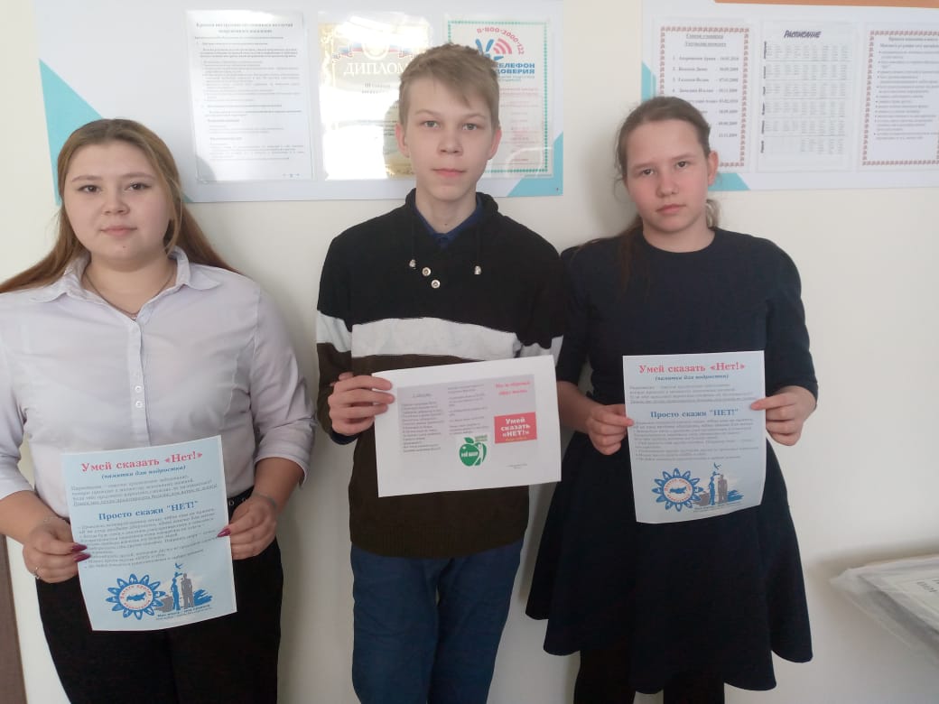 В рамках межведомственной комплексной оперативно-профилактической операции «Дети России -2023» с 03.04. – 12.04.2023г., отряд профилактики «Школьный патруль», обучающимся раздал листовки «Умей сказать НЕТ!»