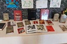 В рамках месячника патриотического воспитания в школе организована выставка книг, под названием "Порохом пропахшие страницы".