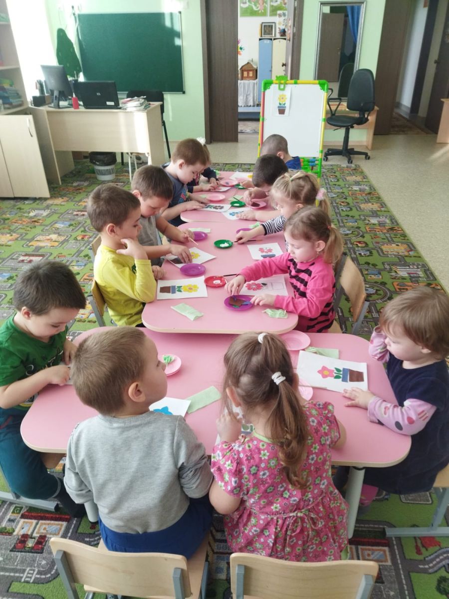 В дошкольной группе на занятиях по аппликации малыши занимаются с удовольствием.