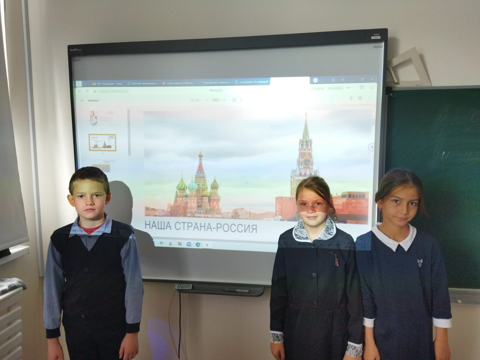 В рамках программы внеурочной деятельности "Разговоры о важном", во всех классах провели классные часы на тему "Наша страна - Россия"