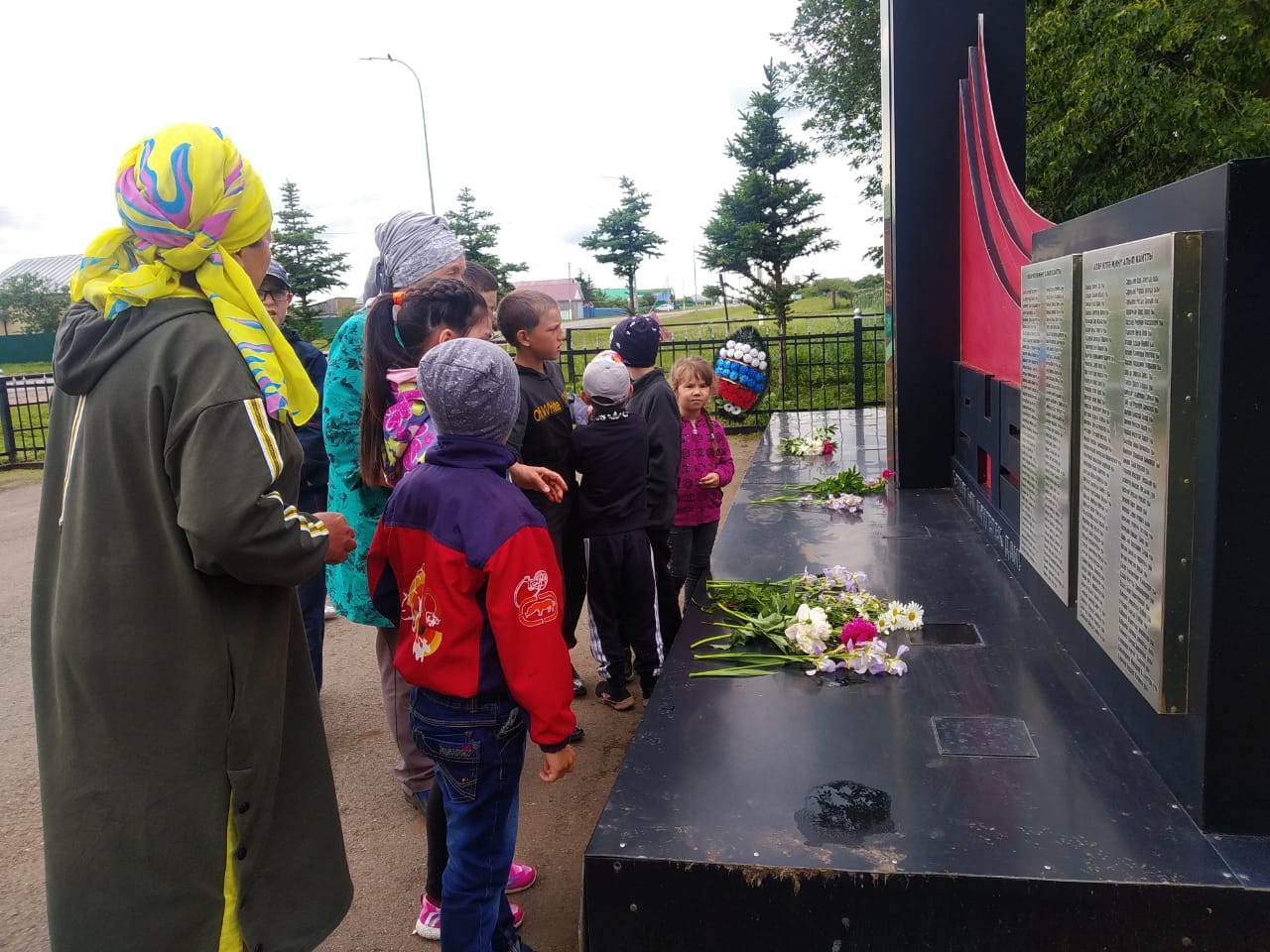 Сегодня ребята и воспитатели пришкольного оздоровительного лагеря "Дружба" и летнего лагеря труда и отдыха "Пчёлка" возложили цветы к памятнику павшим в Великой Отечественной войне и почтили память павшим минутой молчания.