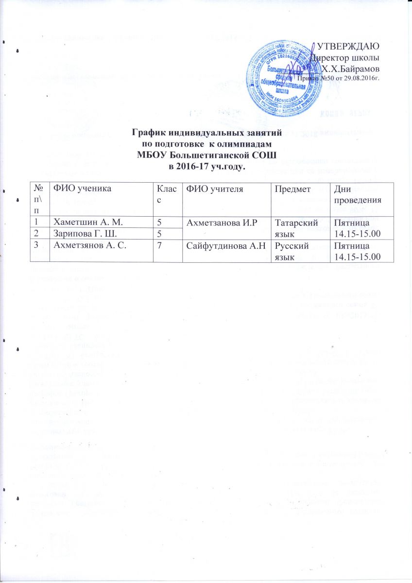 График индивидуальных занятий по подготовке к олимпиадам в 2016-17 уч. году.