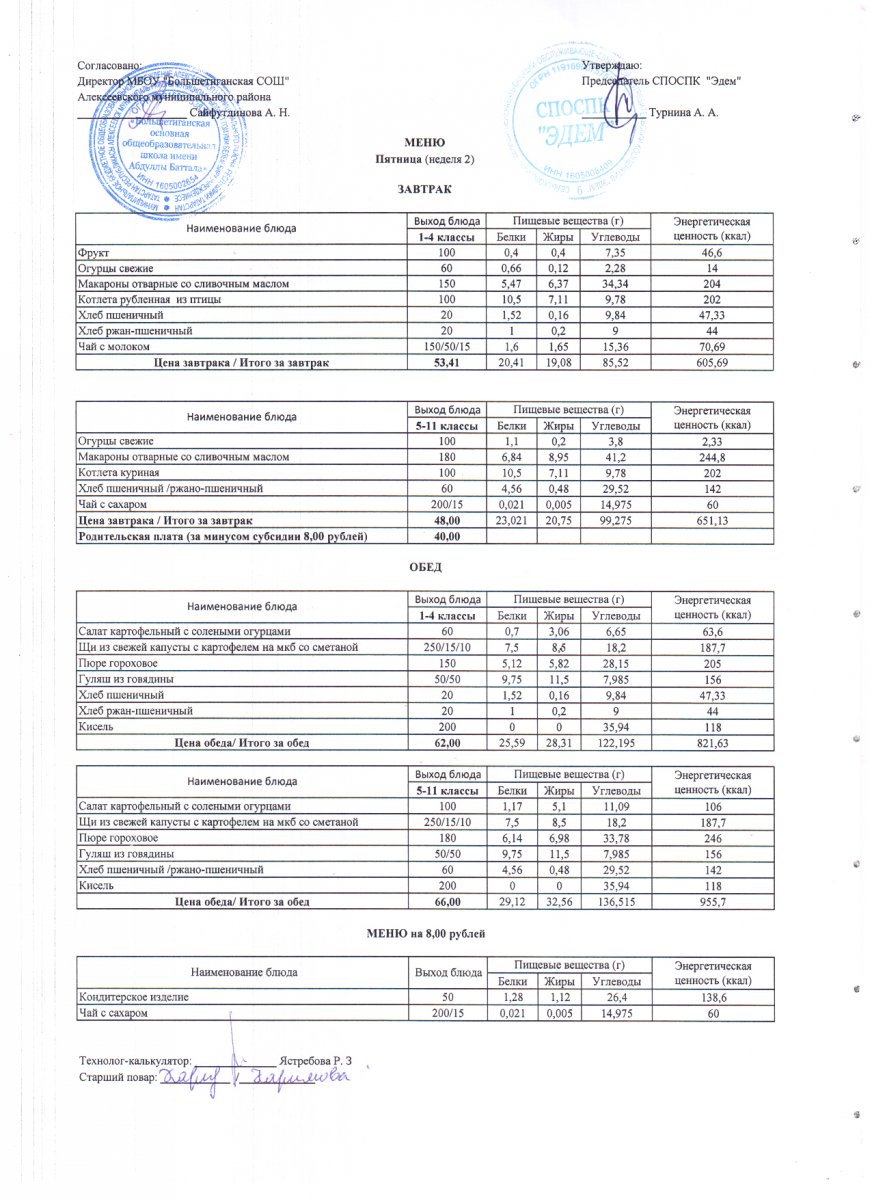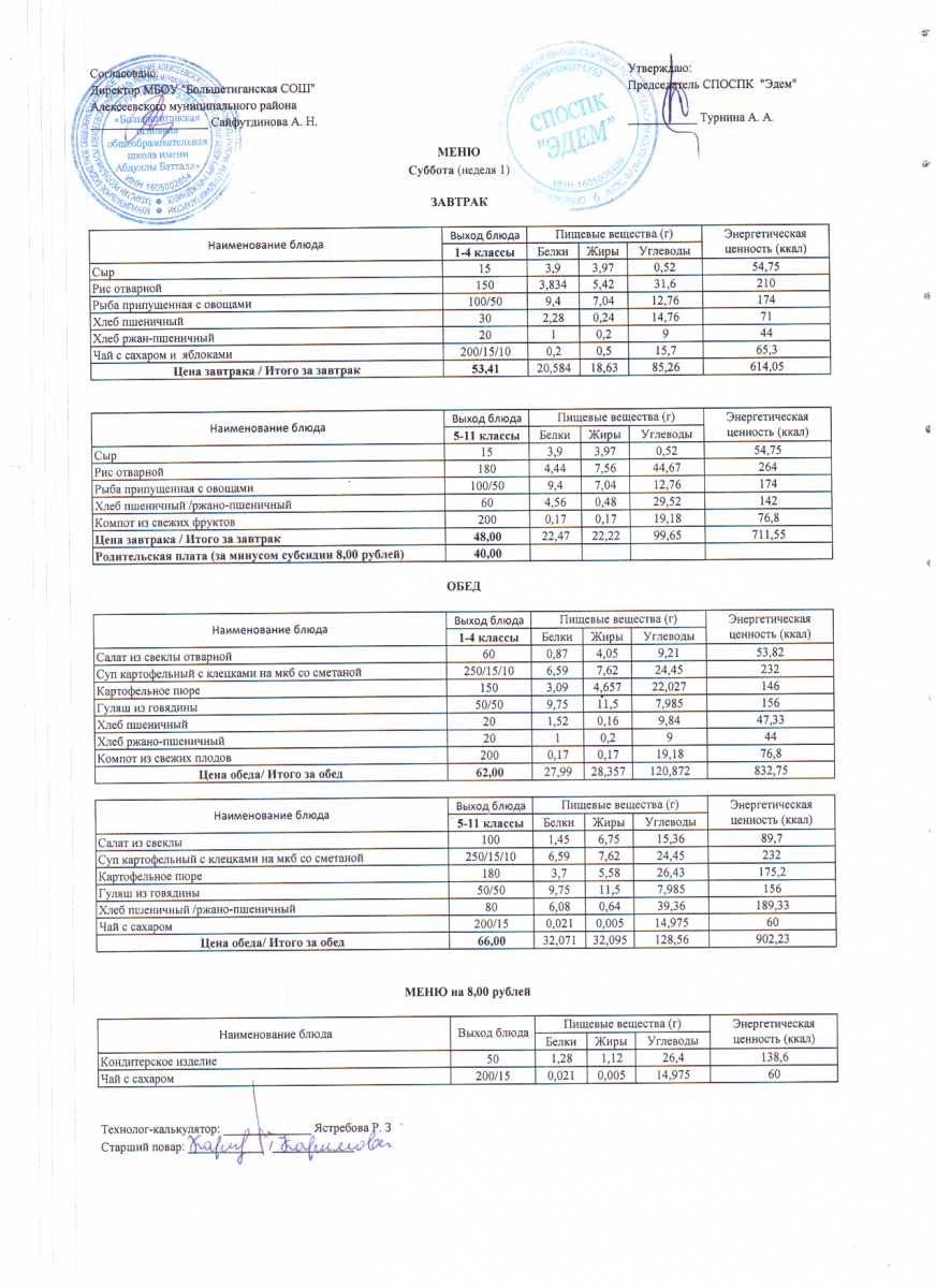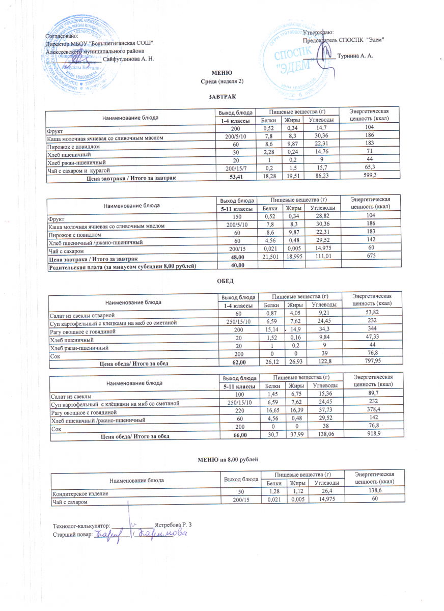 - 12 дневное меню по МБОУ "Большетиганская ООШ имени Абдуллы Баттала" (Дошкольная группа)