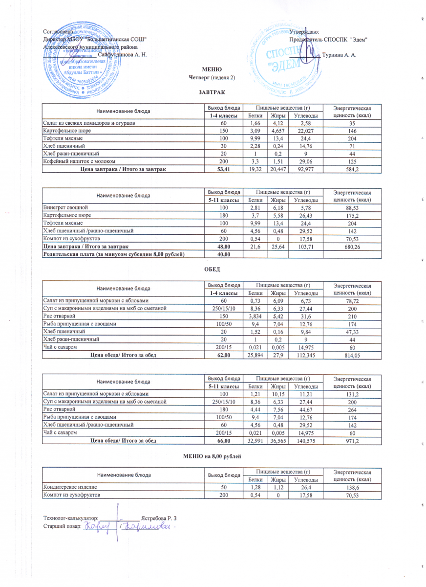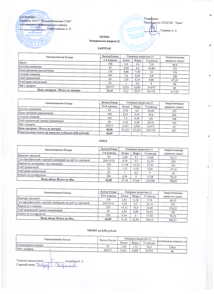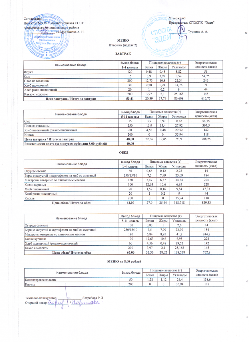 - 12 дневное меню по МБОУ "Большетиганская ООШ имени Абдуллы Баттала" (Дошкольная группа)