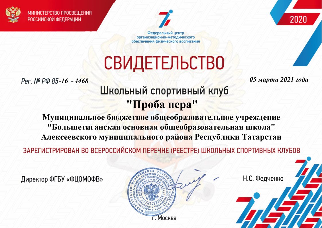 Свидетельство ШСК "Проба Пера"
