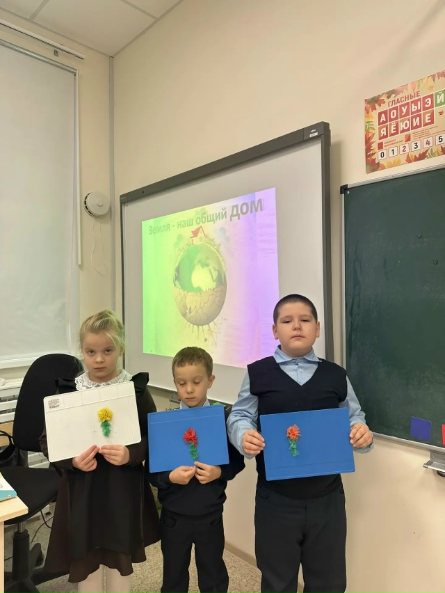 С учениками провели беседу о проблеме экологии. Демонстрировали то, что и они могут кое-что сделать для улучшения среды обитания. Чтобы развивать личностных качеств ребёнка, в конце мероприятия, была организована работа с использованными материалами. Дети из медицинских масок сделали поделки. Получились очень красивые цветы.