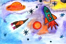 Рисунки- аппликации подготовительной группы "Полет на ракете" 12.04.2019