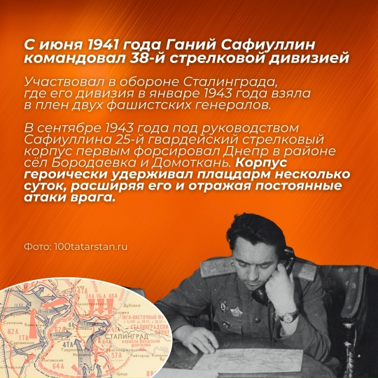 Татарстаннан Бөек Ватан сугышы геройлары турында сөйләүне дәвам итәбез. Бүген безнең Түбән Камадагы Идел буе федераль округының Татарстан кадет корпусы Гания Сафиуллин турында сөйләвебез. Данлыклы генералның тормыш юлы һәм сугышчан юлы турында безнең карточкалардан укыгыз #Победа80 #Героитатарстан